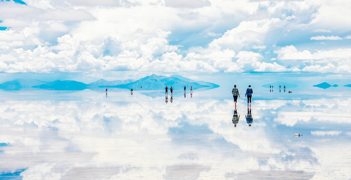 Салар  де  Уюни  (Боливия) – әлемдегі  ең үлкен тұзды көл. Бұл көл жаңбырдан кейін үлкен «айнаға» айналады. Аспан мен бұлт жерге көшкендей  болады.  Ғарышкерлер  оны «Жердегі  ең  тегіс  бет» деп есептейді.   Ұзындығы – шамамен 10 500  шаршы  шақырым.