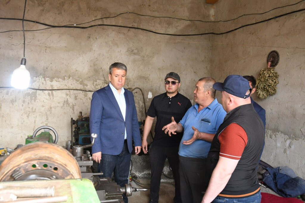 Аудан басшысы алдымен 2024 жылы бағдарлама аясында несие алып, кәсібін бастаған жеке кәсіпкер Абзал Сағидуллаевтың темір жону цехымен танысты. Жеке кәсіпкер «Ауыл аманаты» бағдарламасы аясында 9,2 млн теңге несие алып, бүгінде арнайы тапсырыс арқылы техникаларға қажетті темір бөлшектерді жөндеу, темірді кесу, жону, тозығы жеткен темір бұйымдарын қайта қалпына келтіру сынды жұмыстармен айналысуда. Қазіргі уақытта кәсіпкердің бұл жұмысының сұранысы жоғары болғандықтан, ауданнан бөлек көршілес аудандардан да техникалардың бөлшектерін жөндетуге келушілер де бар екен.