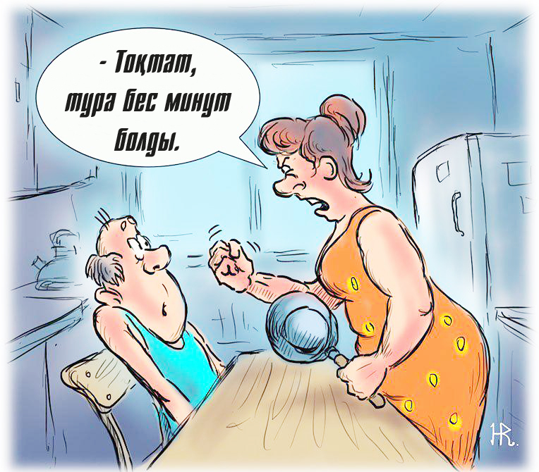 — Бәйбіше, тамақ дайын ба? Асқазаным аш иттей ұлып тұр. Бүгін жұмыстан кеш шықтым. Басекең пәтуасы жоқ жиналыс жасады, — деп, кінәсін жуып-шайып жатыр.
