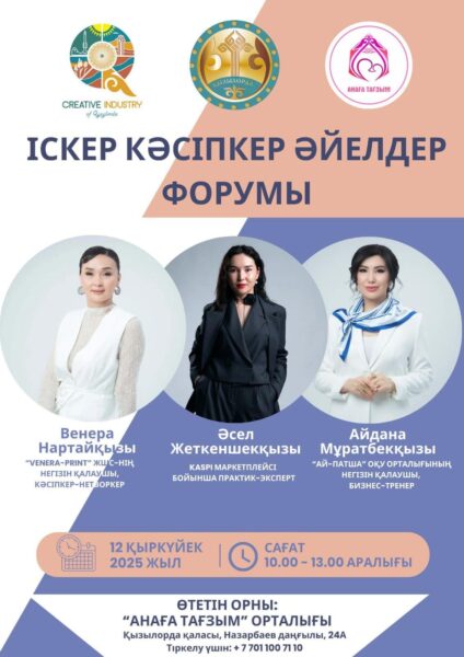 12 қыркүйек күні сағат 10:00–13:00 аралығында «Анаға тағзым» орталығында өтетін «ІСКЕР КӘСІПКЕР ӘЙЕЛДЕР» ФОРУМЫНА шақырамыз!
