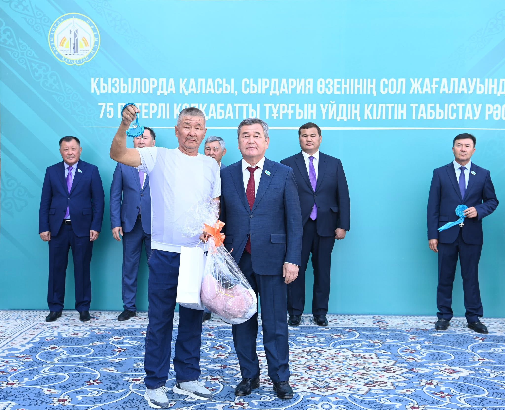 Бүгін жерлестеріміздің баспаналы болу қуанышына ортақтасып, пәтер кілтін табыстау рәсіміне жиналдық.