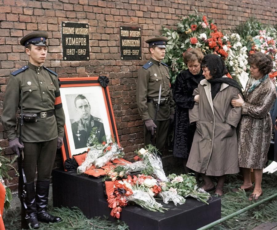Қаза тапқаннан кейін екінші рет батыр атағы беріліп, кремль қабырғасына жерленді (фото-6). Осылайша Брежневтің Хрущев сияқты мерекеге орай мақтану және баяндама жасау үшін асығыс ұшырылған атаққұмарлығы Комаровтың түбіне жетті.