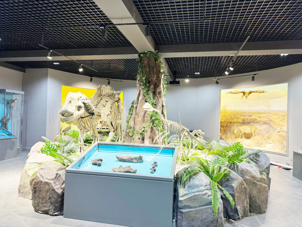 Бір ерекшелігі, музей келушілеріне қызықты тақырыптар бойынша ақпаратты таңдауға және зерттеуге мүмкіндік беретін интерактивті сенсорлық панельдер, тарихи тұлғалардың өмірбаяндары, археологиялық олжалар, этнографиялық мәліметтер, тарихи карталар мен диаграммалар қойылған. Мәселен, динозаврлар дәуіріне, олардың анимациялық қозғалысына интерактивті саяхат жасалады. Архивтік кадрларды, бейнежазбаларды, анимацияларды және деректі фильмдерді көрсету үшін үлкен залдар мен күндізгі жарықта да қолайлы жарық диодты дисплейлер қолданылады. «Тірі панельдер» немесе мультимедиялық диорамалар деп аталатын интерактивті сахналық композициялар бар. Бұл физикалық объектілер (манекендер, тұрмыстық заттар, модельдер) және цифрлық проекциялардың (бейне, анимация, жарықтандыру, дыбыс) тіркесімі тірі көрініс әсерін тудырады. Мысалы, жауынгерлердің айғайлаған дауыстарын, барабандар дыбысын, қозғалыстағы жебелерді, Аңырақай шайқасын көруге болады.