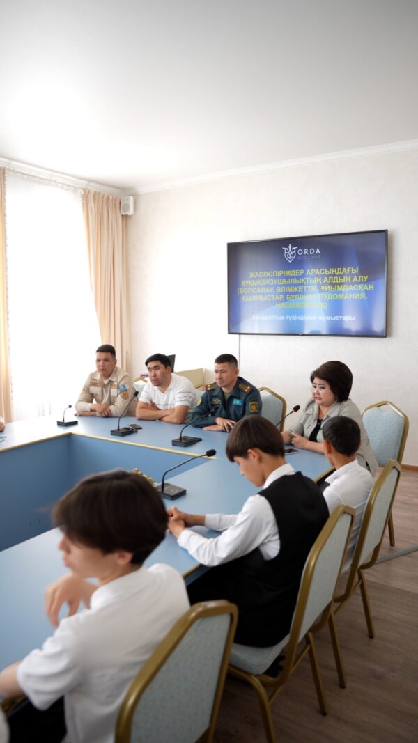 Бүгін Қызылорда қаласындағы «ОРДА» жоғары колледжінде Жеңістің 80 жылдығына орайластырылған жастар арасында әскери қызмет өткеруді насихаттау және жастардың патриоттық рухын көтеруге бағытталған кездесу өтті.