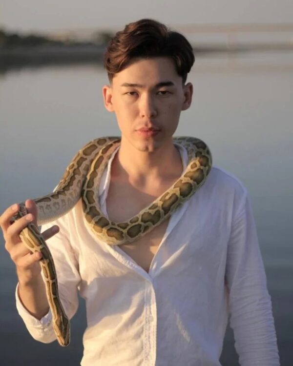 Қазір оның қолында жыланның үш түрі бар. Бірінің ұзындығы 2 метр болса, қалған екеуінікі 1 метрден асады. Барлығы сертификатталған, заңды. Уы жоқ, демек, адамға еш зиянсыз. Тіпті қожайынымен бірге аниматор орталығында қойылымдарға қатысады. Адамдарға әбден үйренген.