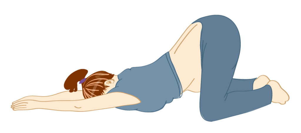 Төрт тағандап, жылқы секілді тұрсақ жеткілікті деп ойламаңыз, тізерлеп тұрып, қолыңызды шынтақтан бүгіңіз. Егер бұл қолыңыздан келсе, екі қолыңызды алға созып, иығыңызды жерге тигізіп, жамбас тұсын көтеріңіз.