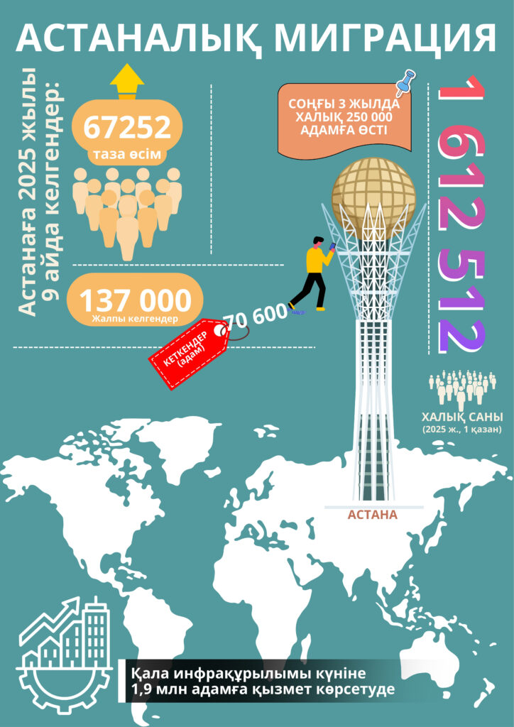 Мұндай сауал Мемлекет басшысын я болмаса елорда әкімін ғана емес, бас қалада тұратын кез келген адамды ойландыратыны анық. Өйткен себебі, Астанаға өңірлерден көшіп келушілердің саны тез өсіп келеді. Ұлттық статистика бюросы (ҰСБ) жариялаған ресми дерекке сүйенсек, 2025 жылдың 1 қазанындағы мәлімет бойынша елорда халқының саны 1 612 512 адамды құраған. Әсіресе, көші-қондағы жағымды сальдо көрсеткіші – 68 336 (2024 жылғы қаңтар-қыркүйекте – 54544) адам. Соның ішінде сыртқы көші-қонда 1084 адам (2024 жылғы қаңтар-қыркүйекте – 1691), ішкі көші-қонда – 67252 (өткен жылғы қаңтар-қыркүйекте – 52853) адам. Биылғы 9 айда төр қалаға 67 252 адам қоныс аударған. Алайда, бұл – тек тіркелгендер туралы ресми дерек. Тіркелмей-ақ тұрып жатқандар қаншама. Оған себеп, ішкі көші-қон саласы бақылаусыз, иесіз қалып отыр.