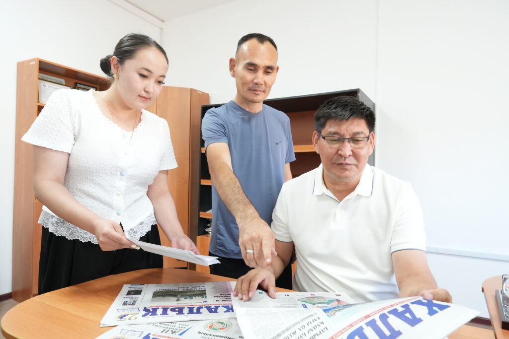 Бас редактор Нұржан Әбжанұлы, тілшілер Тұрар Бекмырзаев пен Оразкүл Темірғали