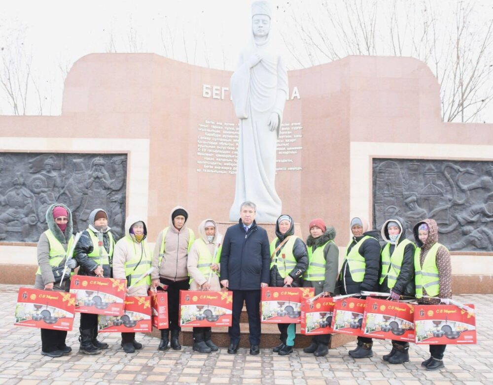 Қазалы ауданының әкімі Алмасбек Есмаханов 8 наурыз – Халықаралық әйелдер күні мерекесіне орай Әйтеке би кентіндегі тазалық жұмыстарымен айналысатын нәзік жандыларға құрмет көрсетіп, мерекемен құттықтады.