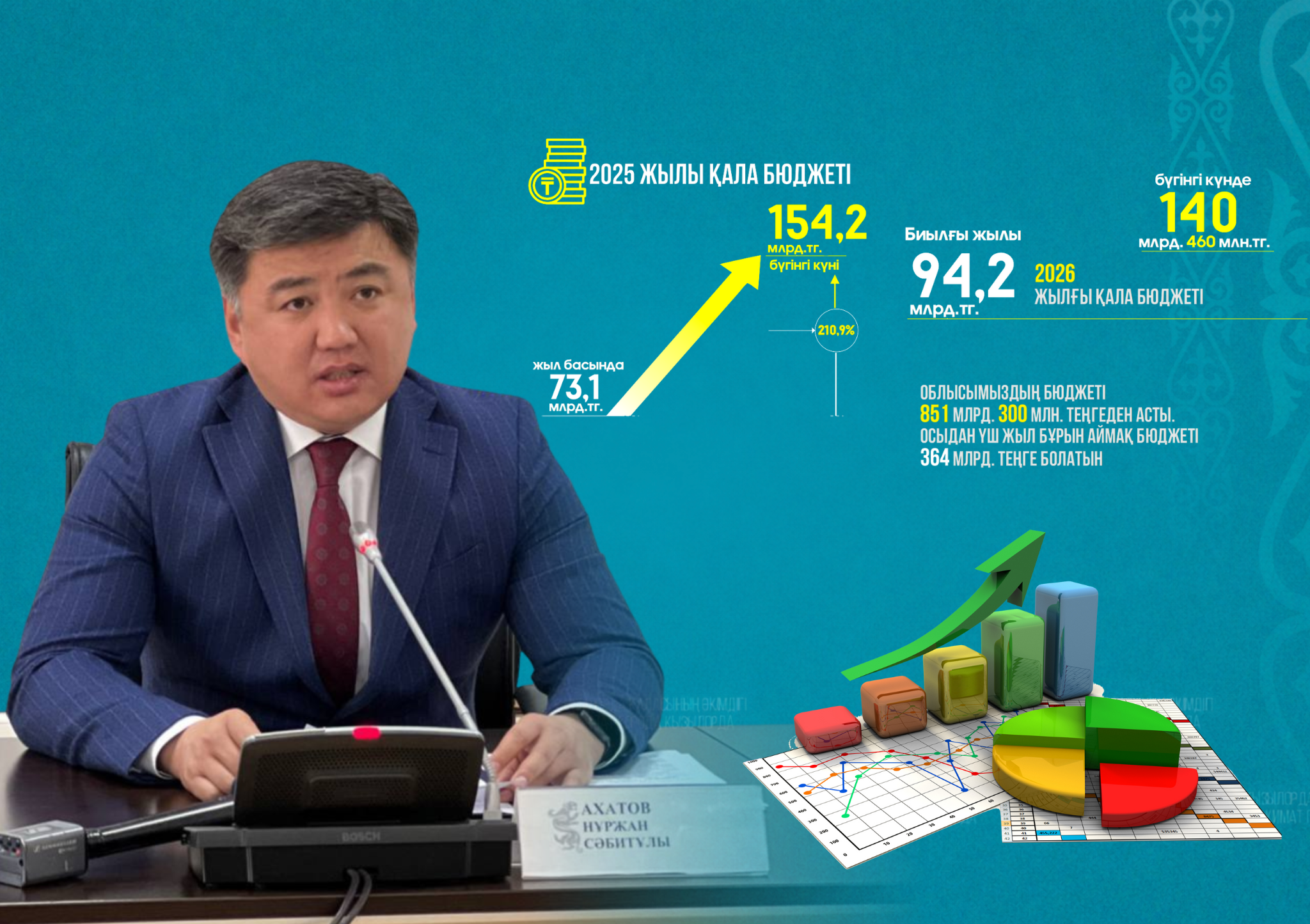 Нұржан Сәбитұлының мәліметінше, есепті кезеңде құрылыс саласында да оң серпін байқалады. Қала аумағында атқарылған құрылыс жұмыстарының көлемі 182 млрд 276 млн теңгеге жетіп, 111,3 пайыздық өсім көрсеткен. Облыстағы үлесі 49,8 пайызды құрайды.
