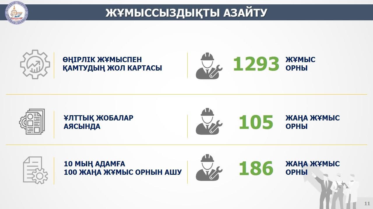 • Халықтың жұмыспен қамтылуы — біздің ең басты мақсатымыз. Биылғы жылы өңірлік жұмыспен қамтудың жол картасы аясында 1293 жаңа жұмыс орны ашылды. Ұлттық жобалар бойынша 13 жоба іске қосылып, 105 адам тұрақты және уақытша жұмысқа орналасты. Мемлекет басшысының тапсырмасына сәйкес, әр 10 мың адамға 100 жаңа жұмыс орнын ашу мақсатында аудан көлемінде 186 жұмыс орны құрылды. Бұл көрсеткіштер алдағы уақытта жұмыспен қамтуды одан әрі кеңейтуге мүмкіндік береді. Жұмыссыздық деңгейін төмендету — экономикалық тұрақтылық пен тұрғындардың өмір сапасын арттырудың негізгі шарты. Аудандағы жаңа жұмыс орындары халықтың әлеуметтік жағдайын жақсартуға және ауданның дамуына оң әсерін тигізуде. Алдағы уақытта да жұмыспен қамтуды кеңейту бағытындағы іс-шаралар жалғасатын болады,-деді Берік Әбдіғаппарұлы.
