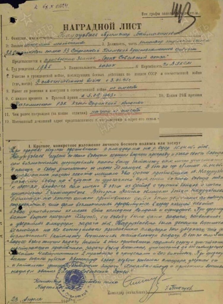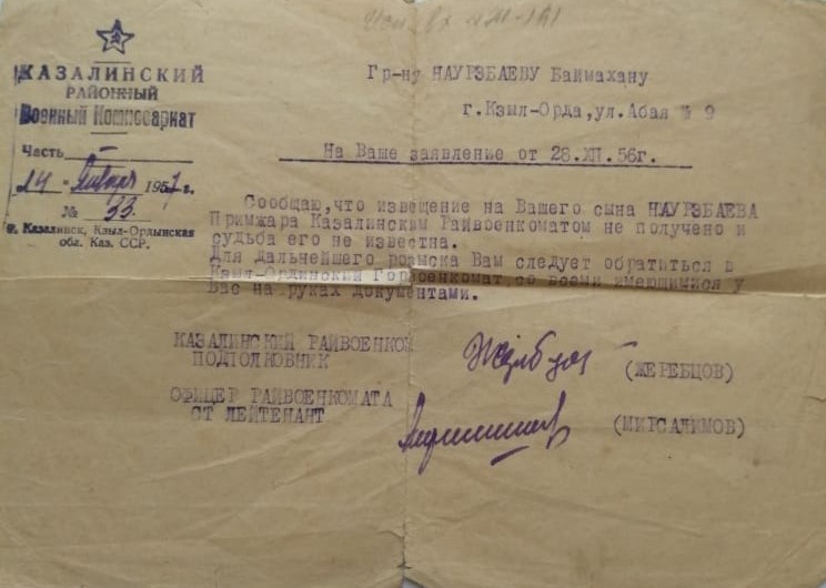 Енді міне, Қазалының жетінші батыры белгілі болып отыр. Сонымен есімі 80 жыл белгісіздеу болып келген Кеңес Одағының батыры кім?