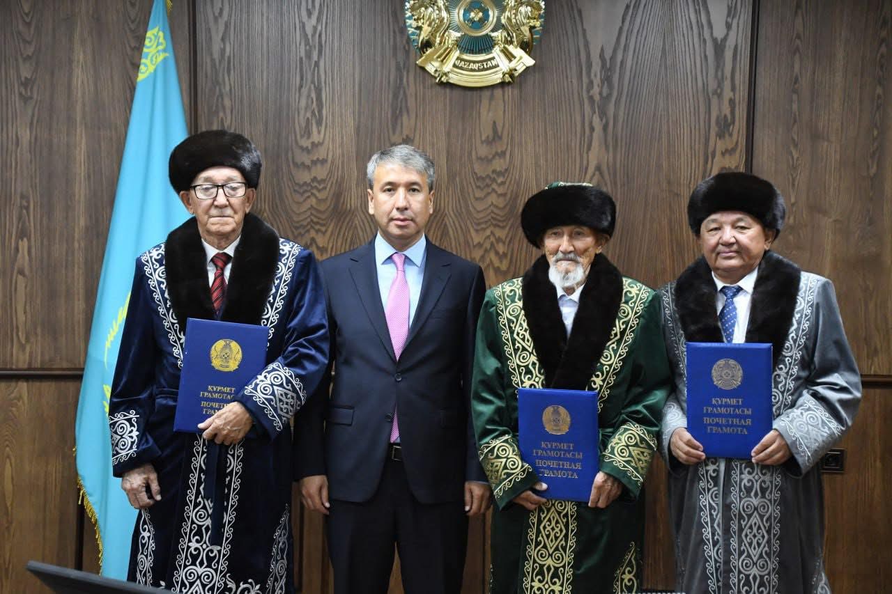 Басқосуда еңбек және тыл ардагері Сайн Дәуіт ақсақалға облыстың ең жоғарғы марапаты — Қызылорда облысының «Құрмет» грамотасы, ал Кемалбай Молдабекұлы мен Қуанған Суханұлына Қазалы ауданының дамуына қосқан үлестері үшін ауданның ең жоғары марапаты – Қазалы ауданының «Құрмет» грамотасы табысталып, халқымыздың игі дәстүріне сай шапан жабылды.