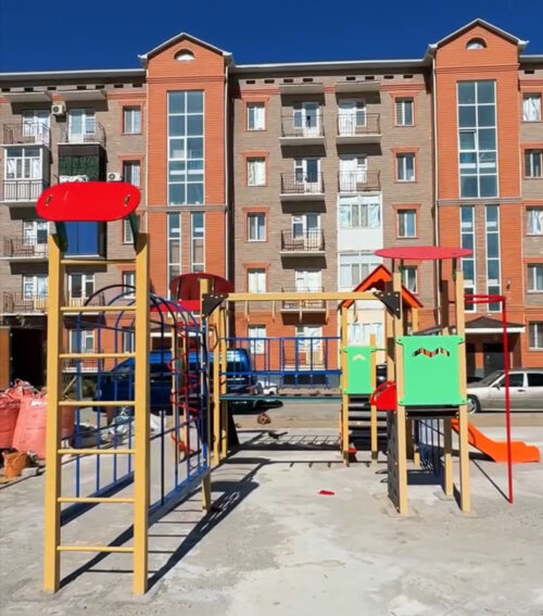 Мұндай шараларды «Универсам» мөлтек ауданындағы Бектұрғанов көшесі №13 үйдің ауласында бой көтеріп жатқан ойын алаңынан көруге болады. «Еңбек Қызылорда» мекемесі атқарып жатқан балаларға арналған заманауи сырғанақтар мен әткеншектердің айналасына қауіпсіздік төсеніштері төселіп, түнгі жарық шамдары қойылуда.