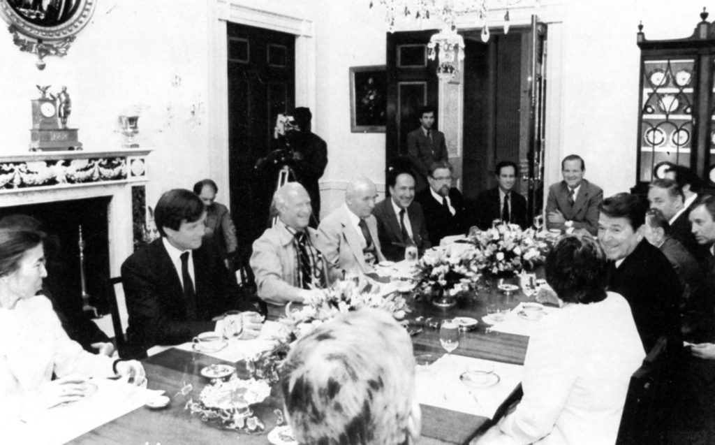 (Ашық дереккөзінен алынған фотода: Айша апамыз АҚШ президенті Рональд Рейганның қабылдауына сол жақта бірінші отыр).