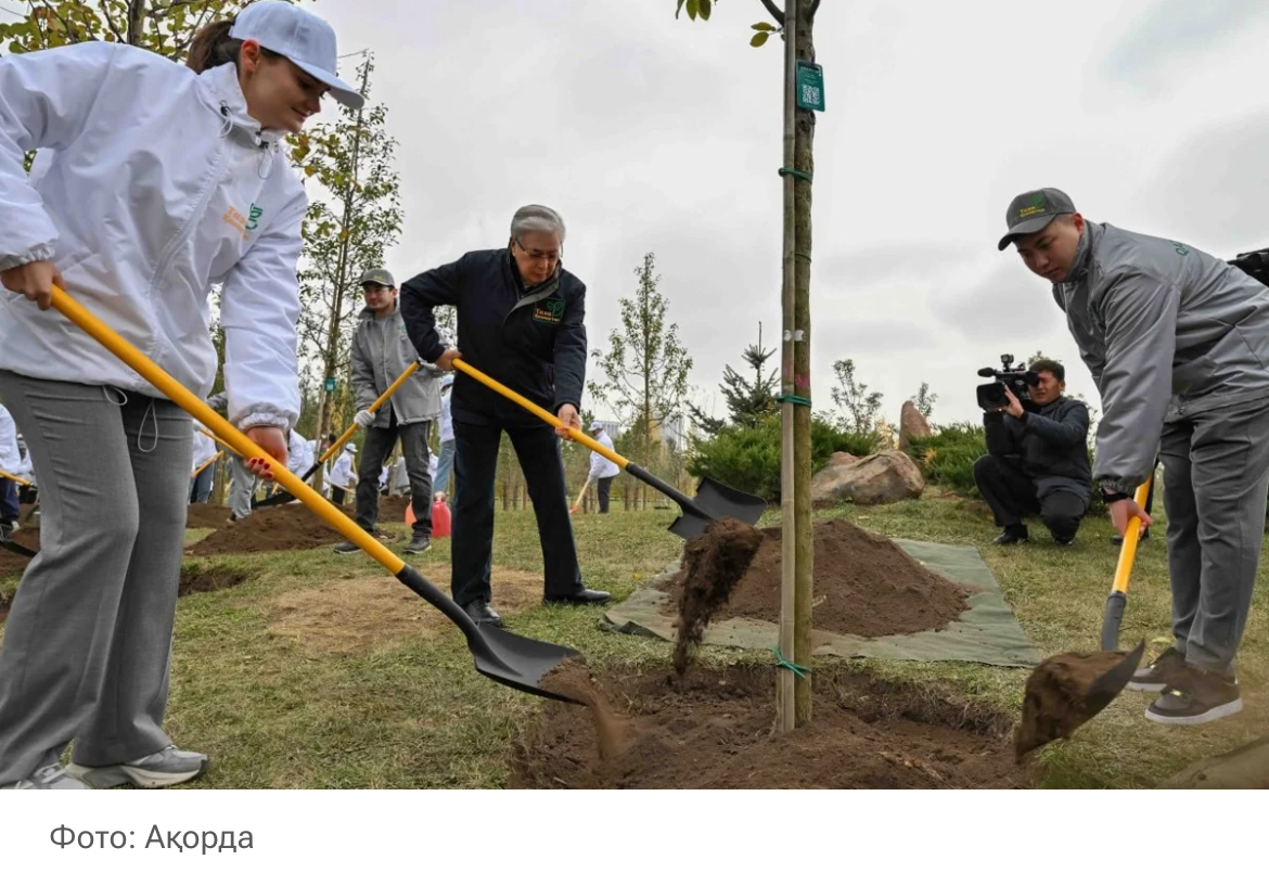 Президент Қасым-Жомарт Тоқаев Астана қаласындағы Ботаникалық саябақта ерікті және белсенді жастармен бірге ағаш екті.