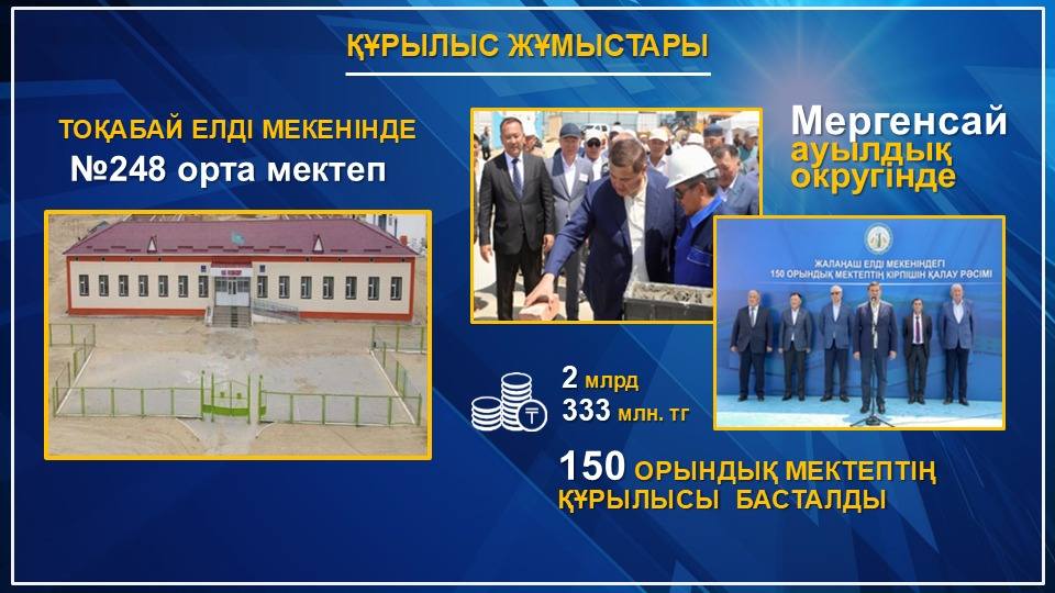 Білім беру саласы да іркіліссіз ілгерілеуде. Сексеуіл кентінде 300 орындық жаңа мектептің құрылысы жүріп жатыр, ал Қызылжар елді мекенінде осындай қуаттағы білім ордасы биыл қолданысқа беріледі деп күтілуде. Бұған қоса, үш мектепке күрделі жөндеу жүргізіліп, балалардың заманауи әрі қауіпсіз ортада білім алуына жағдай жасалып жатыр.