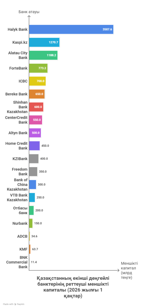 2025 жылдың қорытындысы бойынша Қазақстандағы екінші деңгейдегі банктердің реттеуші капиталы 10,8 трлн теңгеге жетіп, бір жыл бұрынғы көрсеткішпен салыстырғанда, 13,9%-ға (1,3 трлн теңгеге) артты, — деп хабарлайды halyqline.kz тілшісі ranking.kz порталына сілтеме жасап.