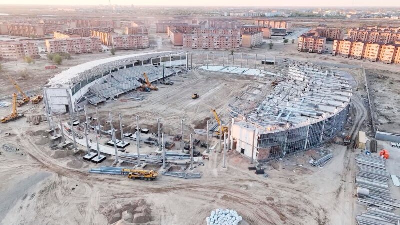 Сол жағалаудағы жаңа стадионның шығыс және батыс трибуналарының металл конструкциялары орнатылып, қабырғалары мен ішкі бөліктері, сыртқы витраждары қалануда. Жылу, су, электр, желдету желілері тартылуда. Қазіргі кезде футбол алаңын жабдықтау және аумақты абаттандыру жұмыстары қолға алынған.
