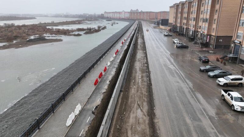 Өткен жылдан бері Бейбарыс сұлтан көшесіне дейінгі аралықтағы Сырдария өзенінің қорғаныс бөгеті нығайтылып, 6,7 шақырым жол бөлігін қайта жаңғырту басталған болатын. Құрылыс-монтаж жұмыстарын «УАД» ЖШС жүргізуде. Мердігер мекеме асфальт төсеуді аяқтады. Сонымен қатар, Сырдарияның қорғаныс бөгеті тазартылып, 1,4 шақырымға жуық дамба күшейтілді. Қауіпсіздікті арттыру мақсатында тіреу қабырғасы тұрғызылды. Қазіргі уақытта асфальттың тегістеу қабатының 5,4 шақырымы төселіп, жарық бағаналары мен бағдаршамдар орнатылуда. Даңғыл мамыр айында пайдалануға беріледі деп жоспарлануда.