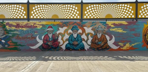 «Тапсырыс берушінің тілегіне байланысты Жалаңтөс баһадүр, Баймұрат, Келменбет, Алпамыс, Бұқарбай, Қобыланды батырлардың суретін салдық. Одан бөлек, графити стилінде Қазыбек, Әйтеке және Төле билер, Қорқыт атаның қобыз тартып отырған сәті бейнеленген. Суретті көшеден көрген соң балалар мен жастарда «бұлар кім?» деген сұрақ туып, ізденуі мүмкін. Солардың қызығышулығын арттыру үшін ашық, жарқын түстерді пайдаландық», – деді Мұхит Мырзалиев.