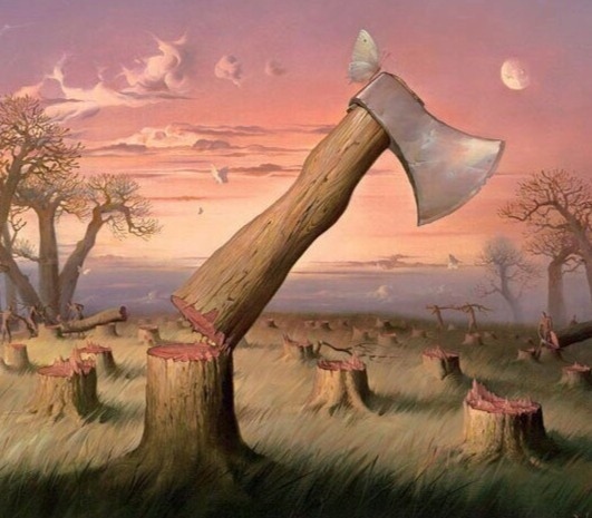 Ертеде бір ағаш екінші терекке: «Балта деген біреу шығыпты деседі. Орманды жайпап жатқан көрінеді. Біз жаққа келіп қалмаса екен пәлекет» депті. Сонда терек: «Несін қорқасың жан-жағымызды қоршаған қалың орманның ортасында емеспіз бе? Жау шақырмай тұр» депті. Сол кезде ағаш: «Терекжан, балтаның басы темір болғанымен, сабы өзімізден екен. Жау іштен шыққанда құтылар айлаң бар ма?» деген екен.