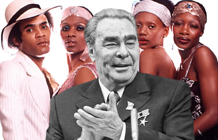 — Ия, 1978 жылдың қыркүйек айынан бастап сыбыс шыққан болатын, Мәскеуге шведтік АББА немесе батыс германиялық «Boney M.» тобы келеді деген. Бірақ, оған ешкім сене қойған жоқ еді. Сөйтсек, алда Мәскеу қаласында өтетін «Олимпида-80» қарсаңында, кеңес одағын ашық ел ретінде көрсету үшін ең жоғары дәрежеде сол кезде келіссөздер жүріп жатқан екен ғой. Қай топ дұрыс дегенде, Брежнев «Boney M.» дұрыс (фото-5) деп шешкен, себебі «іріп-шіріп бара жатқан капитализм қара нәсілдерді аяусыз қанап отыр» деген сөзі шешуші рөл атқарған екен. Бірақ «Boney M.» тобына Мәскеуге гастролге келгенде «Распутин» әнін салмайсыңдар деп шарт қойғанда, олар да: «жақсы, онда сіздер біздерге Қызыл алаңда клип түсіруге рұқсат бересіңдер» деп келіскен екен.
