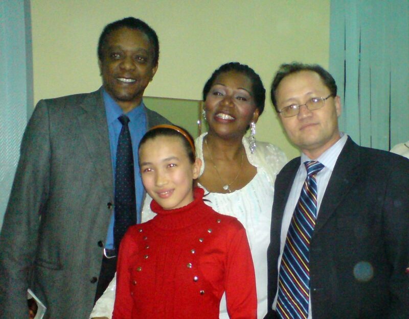 — «Boney M.» тобын 1976 жылы ФРГ-дегі белгілі продюссер Фрэнк Фариан құрды. Ол Гавай мен Кариб аралдарынан Европаға келген жас музыканттар Мэдзи Уильямс, Марсия Баррет, Лиз Митчелл және Бобби Фаррелл төртеуінен «Boney M.» тобын құрған болатын. 1986 жылы топ тарап кеткен соң, әрқайсысы өзінің лицензиясы болған соң, төрт «Boney M.» тобын құрып, ТМД елдерінде концерттік сапарларға келетін болды. Сондай сапарларының бірі 2008 жылы 22 наурызда бір күндік концертімен Ақтау қаласына келгенде, мен бірінші қатарда келіншегім Шолпан екеуіміз концерттің басталуын күтіп отырдық. Менің қолымда гүлшоғы, реті келсе Лиз Митчеллге тапсыру. Концерт басталды, Лиз Митчелл (фото-4) «Сани», «Распутин», «Реки Вавилона», «Хаба-Мама», «Ма Бейкер», «Мальчик с плантаци» т.б. хиттерін орындады. «Boney M.» тобы (фото-2) залмен толық байланысты болды. Жастық шағындағы музыканы естіген үлкен апайлар бәрі билеп кетті. Кезекті әнді аяқтап жатқанда гүл шоғымды алып сахнаға шыққанда күзет өткізіп жіберді. Лиз Митчелге тапсырып бетінен сүйдім (фото-3). Концерт аяқталған соң, өзім сияқты фанаттармен киім ауыстыратын бөлмесіне барып Лиз Митчелмен ағылшын тілінде «Қазалы қаласынанмын» деп ескерткішке фотоға түсуін сұрадым. Лиз өз сөзінде Қазақстанды жақсы көретінін айтып, фотоға түсуге келісім берді (фото-1).