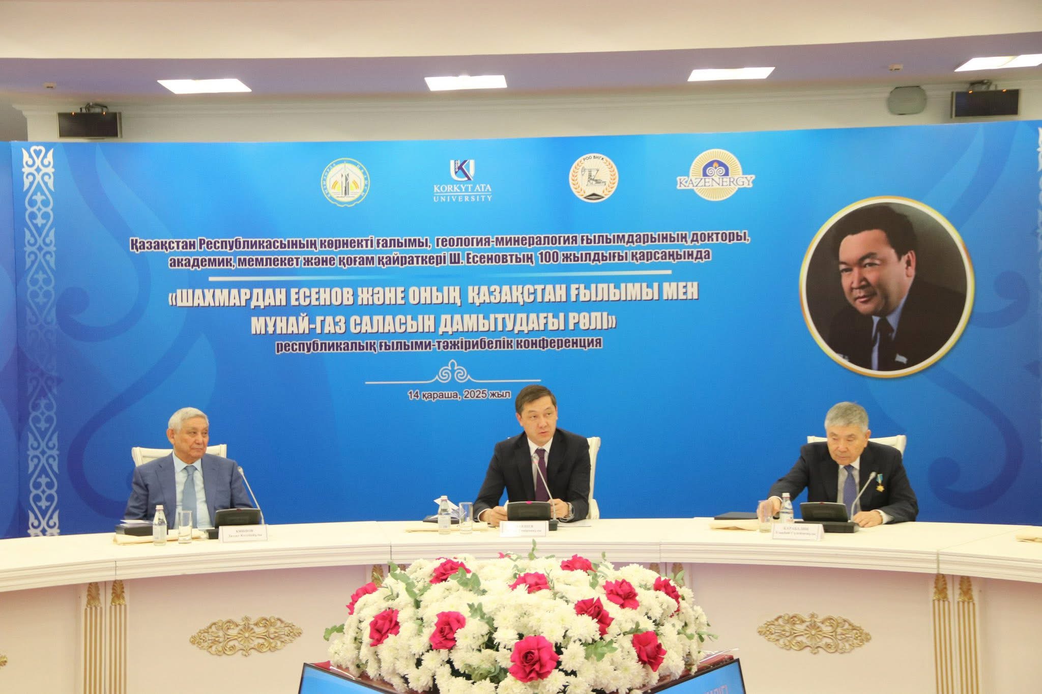 ҚР көрнекті ғалымы, геология-минералогия ғылымдарының докторы, академик, мемлекет және қоғам қайраткері Шахмардан Есеновтың 100 жылдық мерейтойы қарсаңында «Шахмардан Есенов және оның Қазақстан ғылымы мен мұнай-газ саласын дамытудағы рөлі» атты республикалық ғылыми-тәжірибелік конференция ұйымдастырылды.