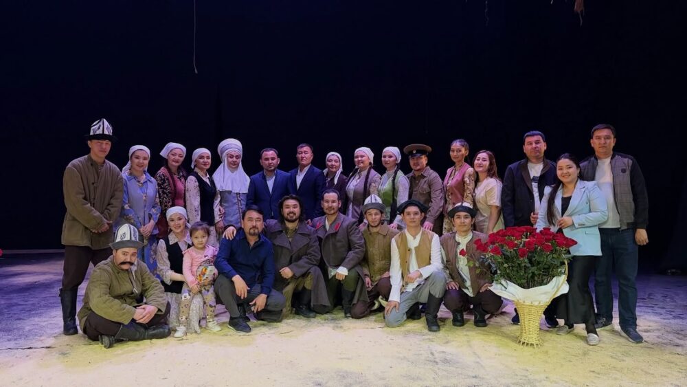 Сондай-ақ, Түркістан қаласының әкімі Әзімбек Пазылбекұлы сөз сөйлеп, әкімдік пен театр ұжымы атынан арнайы ықылас гүлін табыстады.
