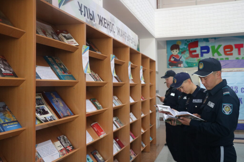 Оқырмандар назарына «Ұлы жеңіс жаңғырығы» аттыкітап көрмесі ұсынылды.