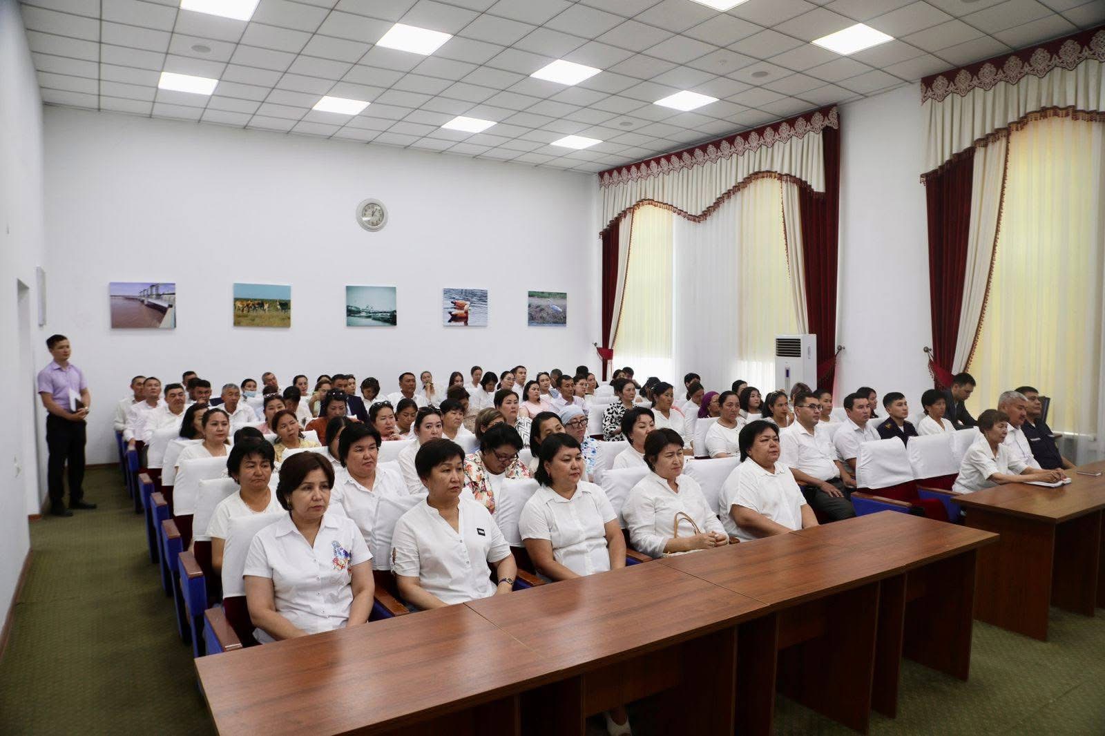Жиында Еңбек қатынастары және еңбек қауіпсіздігі саласындағы жұмыстар мен білім беру ұйымдарындағы еңбек заңнамасының орындалуын қамтамасыз ету туралы Мемлекеттік еңбек инспекциясы комитетінің Қызылорда облысы бойынша департаментінің бас маманы – мемлекеттік еңбек иснпекторы Б.Жұманов хабарлама жасады.