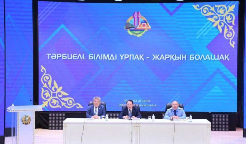 Роза Бағланова атындағы аудандық мәдениет орталығында «Тәрбиелі, білімді ұрпақ – жарқын болашақ» атты тақырыппен өткен жиынға аудан әкімі Мейрамбек Шермағанбет төрағалық етіп, жалпы аудандағы білім саласындағы өзекті мәселелер мен жасөспірімдер арасында құқық бұзушылық пен қылмыстың алдын алуға бағытталған жұмыстарға тоқталды.