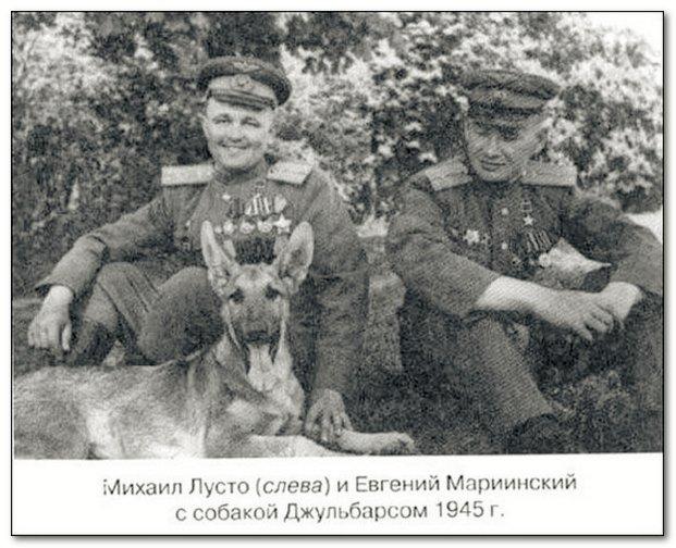 Ашық дереккөзден алынған фотода Кеңес Одағының екі батыры гинералиссимус Сталиннің шинелін жамылған атақты итпен суретке түсуді өзіне құрмет деп білген.