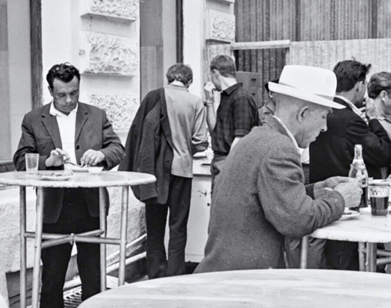 «Рюмочная» тек жұмысшылар ғана емес, инженерлер, ғалымдар, әскерилер, артистер мен актерлер, т.б. танымал адамдардың орны болды. Бұл жерде отыратын орындық болмайтын, бардағыдай «стойкада» тұрып ішетін (фото-2). Тіпті құнақтаулы сәбмімен де келіп арақ ішетін (фото-3). Осы жерде арақ-шараптың буымен шабыттанған ақындар өлең шығарса, режиссерлер тың тақырыпта жаңа туындылар туралы идея туғызды.