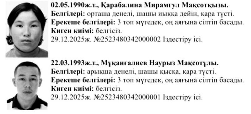 Бұған дейін Атырау облысында жоғалып кеткен Жангелді ауылының тұрғындары Наурыз бен Мирамгүлдің денелері Геолог ықшамауданындағы үйдің ауласынан табылған. Бұл үйді күдікті Сұлтан Сәрсемалиев бұрынғы жұбайы Ақбаянмен бірге жалдап тұрған. Тергеу дерегінше, Сұлтан Сәрсемалиев пен оның жұбайы Ақбаян Алматы қаласына жеткізілген.