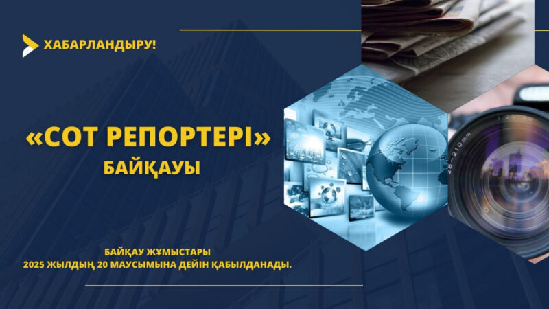 Қазақстан Республикасы Судьялар Одағының Қызылорда облысы бойынша филиалы мен Қызылорда облыстық сотының ұйымдастыруымен журналистер арасында өткізілетін «Сот репортері» байқауы жарияланады.