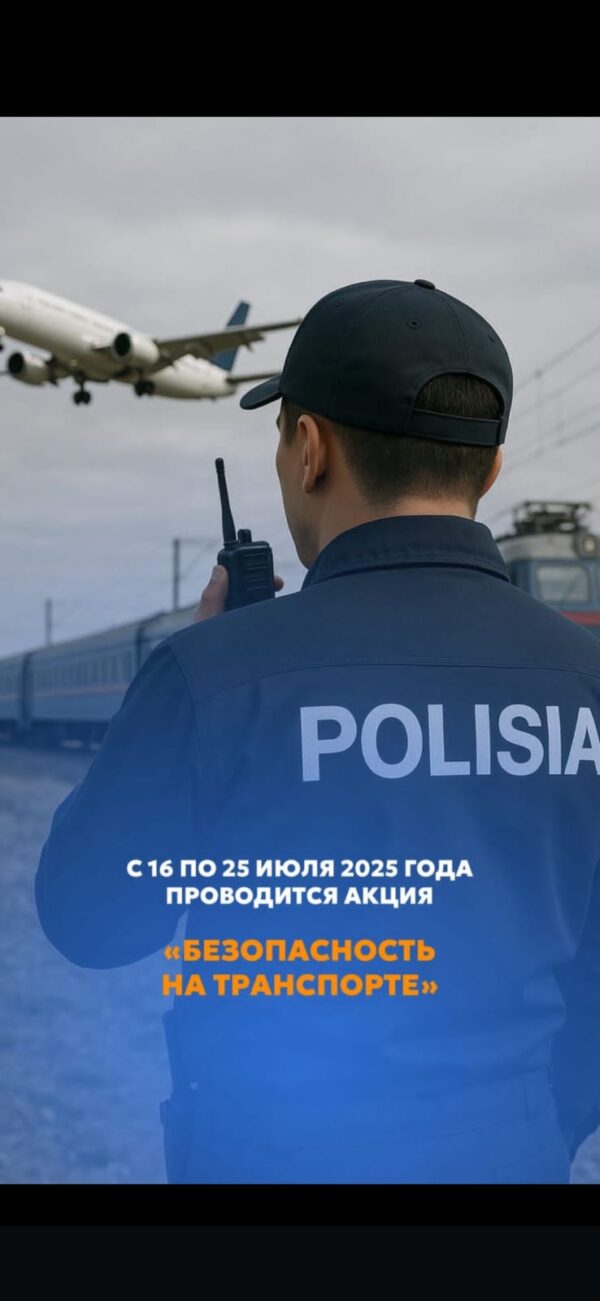 На обслуживаемом участке ЛОП аэропорта г. Кызылорда Департамента полиции на транспорте в период с 16 по 25 июля 2025 года проводится Акция «Безопасность на транспорте!».