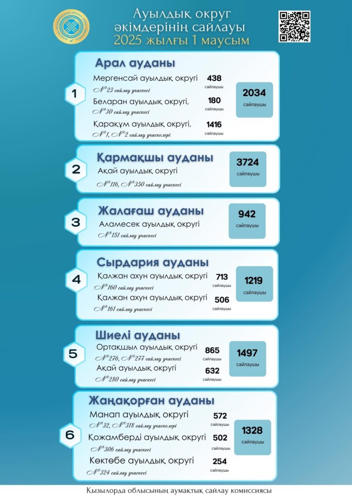 Қызылорда өңірінде өкілеттілік мерзімі аяқталған және мерзімінен бұрын өкілеттілігі тоқтаған ауылдық округ әкімдерінің сайлауы кезең-кезеңімен өткізілуде.