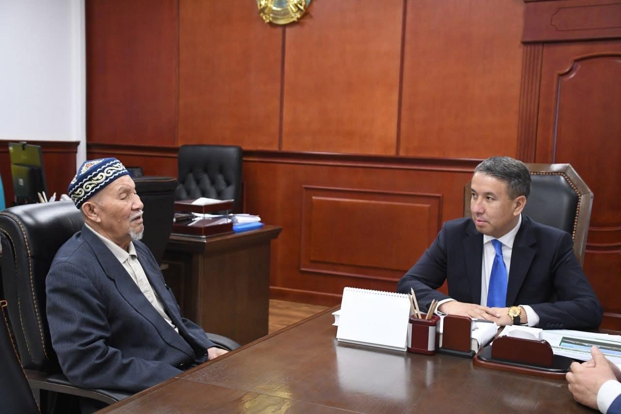 Қазалы ауданының әкімі Алмасбек Есмаханов саналы ғұмырын ауыл шаруашылығы саласына арнап, ел игілігі жолында табанды еңбек еткен еңбек және тыл ардагері, абыз ақсақал Ертас Сәдуақасовты арнайы қабылдады.
