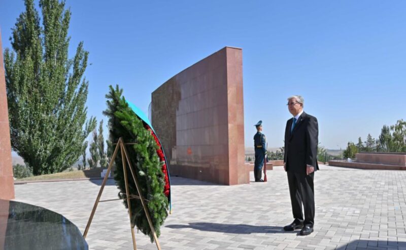 Мемлекет басшысы мемориалдық кешен аумағындағы 1916 жылғы үркіншілік құрбандарына арналған ескерткішке гүл шоғын қойды.