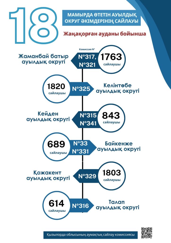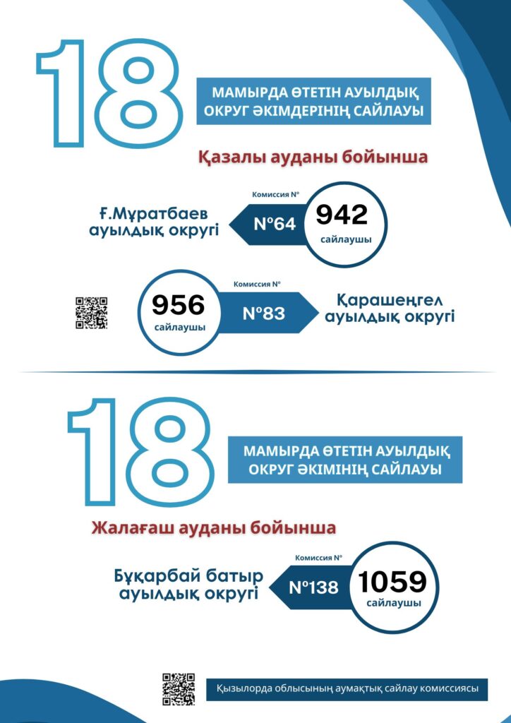 Жаңақорған ауданындағы Жаманбай батыр, Келінтөбе, Кейден, Байкенже, Қожакент, Талап ауылдық округтері сайланады.