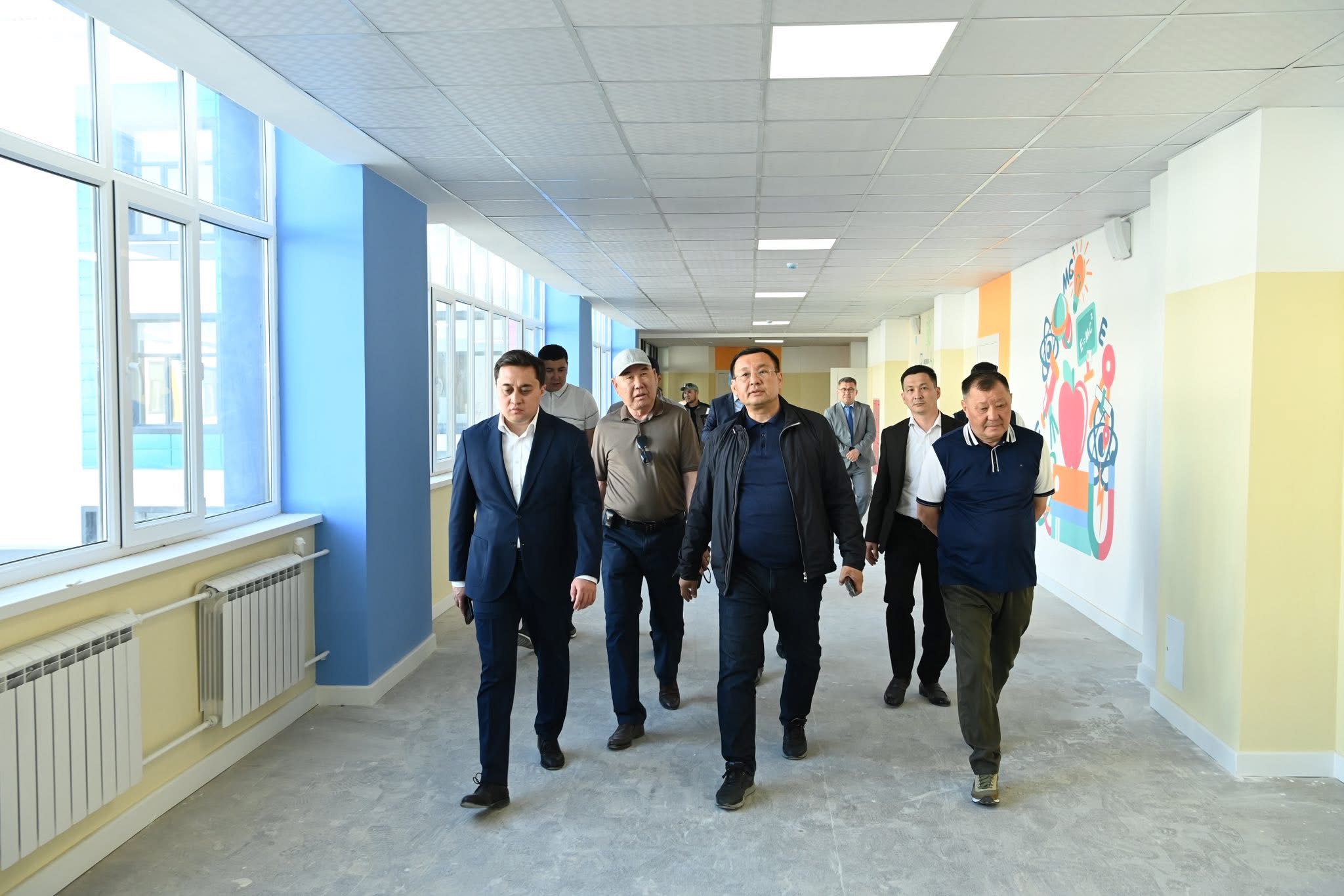 Алдымен физика-математика мектеп-интернатына барды. Мұнда ішкі әрлеу жұмыстары бітуге жақын. Қазіргі таңда техникамен жабдықталып, аумағы абаттандырылуда. Құрылыс басында 150 жұмысшы және 20 арнайы техника жұмылдырылған.