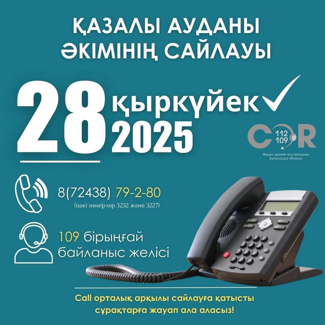 Қазалылық тұрғындар 8(72438) 79-2-80 нөмірін (ішкі нөмірлер 3232 және 3227) теру арқылы аудан әкімінің сайлауына қатысты сұрақтарға жауап ала алады.