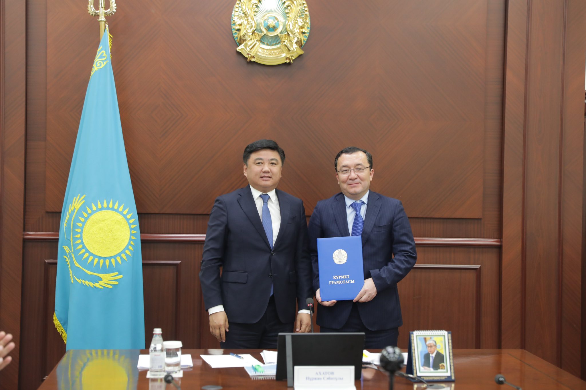 Қала басшысы Ділмұхамед Мінуәрбекұлының мемлекеттік қызметтегі еңбегіне жоғары баға беріп, оның қаланың әлеуметтік-экономикалық және мәдени-рухани дамуына қосқан үлесін ерекше атап өтті.