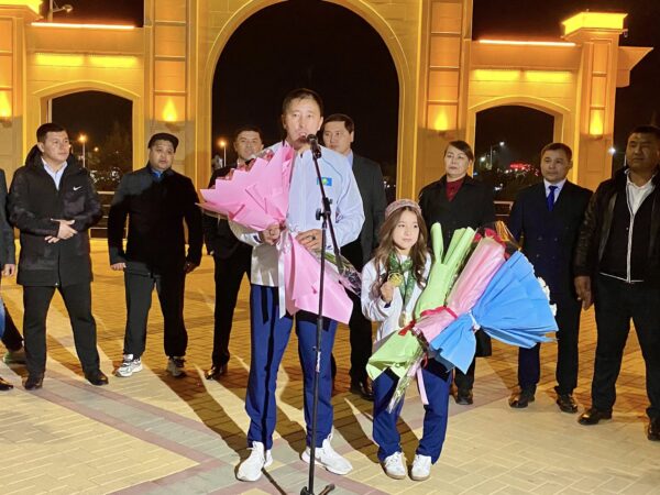 Осыған орай, бүгін Сыр жұртшылығы Әлем чемпионы Бойко Снежаннаны және жаттықтырушысы Бақытбек Рысбаевты теміржол вокзалынан сән-салтанатымен қарсы алды.