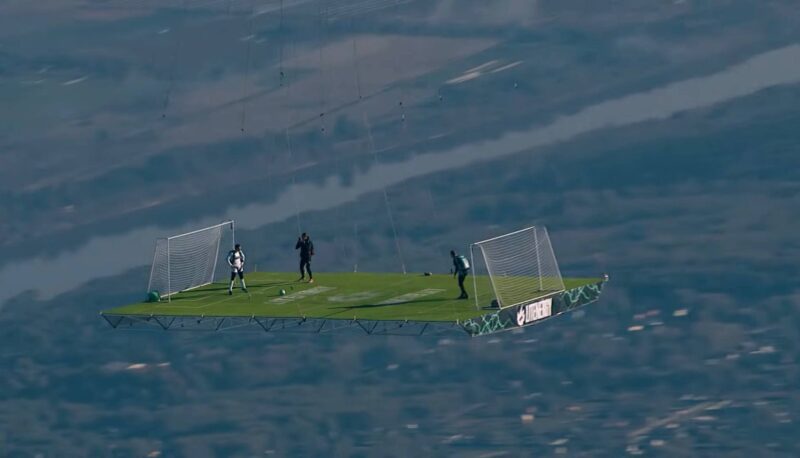 Михаил Литвин өз YouTube арнасында жариялаған видеосында бірқатар блогер ұсынған экстремал тапсырмаларды орындағанын айтты. Сол тапсырмалардың ең ерекше бөлігі — аспанға футбол ойнауға арналған алаң көтеру.