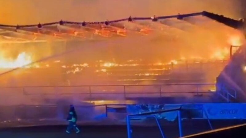 Жалын ағаштан жасалған 400 орындық трибунаны толықтай жойып жіберді. Стадион жалпы 3000-нан астам көрерменге арналған.